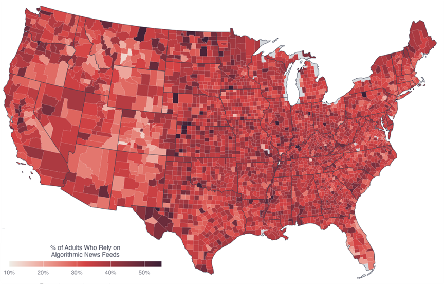 Algorithmic Reliance for News Feed, County-Level